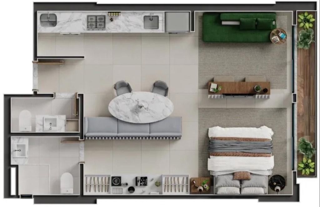 1 Dormitório, sendo 1 Suíte2 Banheiros1 VagaGaragem Coberta
